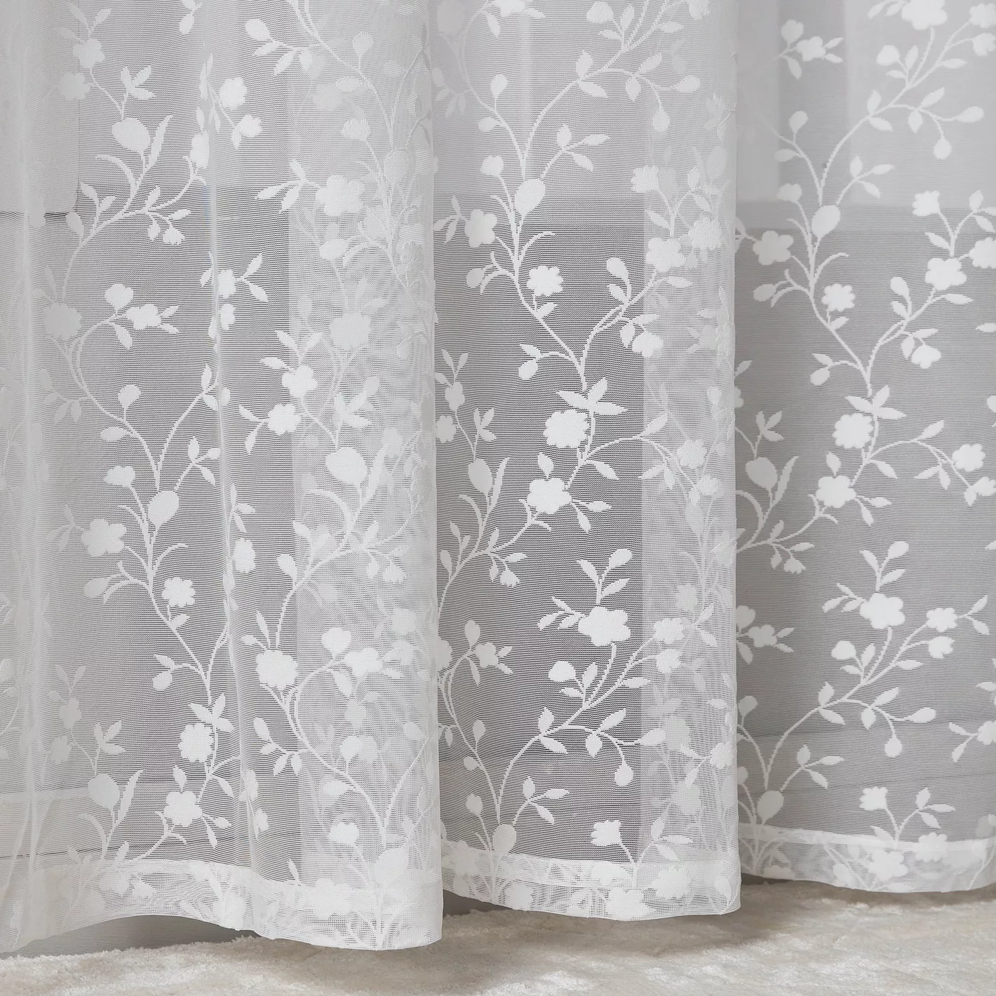 Floral Design Sheer Window Drapes 2-Piece