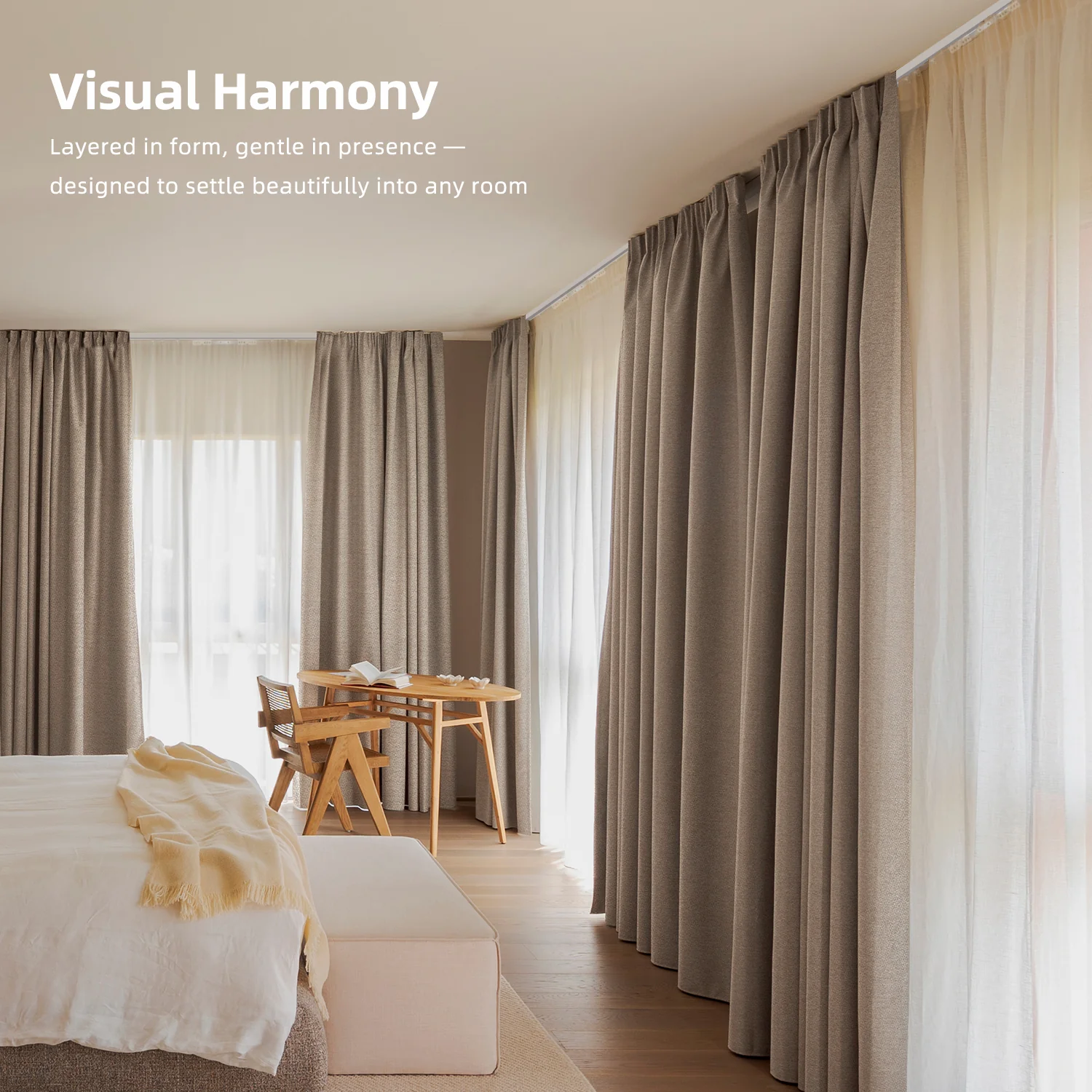 - Dual-track design for sheer and blackout layers